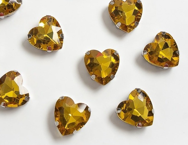Стразы пришивные стекло в оправе "Сердечко", р. 12 мм, золото