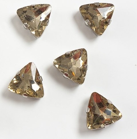 Стразы пришивные стекло в оправе "Треугольник", р. 12 мм, светлое золото
