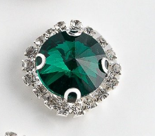 Стразы пришивные стекло в оправе "Круг", d 18 мм, изумрудный