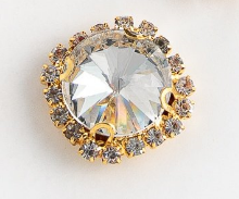 Стразы пришивные стекло в оправе "Круг", d 18 мм, в золоте прозрачный