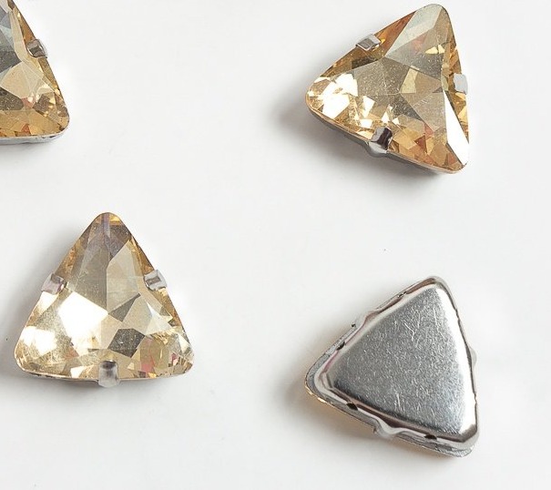 Стразы пришивные стекло в оправе "Треугольник", р. 18 мм, бежевый