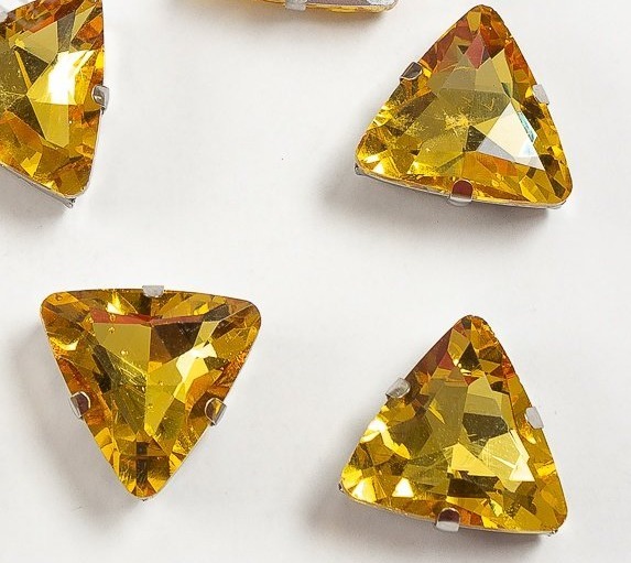 Стразы пришивные стекло в оправе "Треугольник", р. 18 мм, золотой