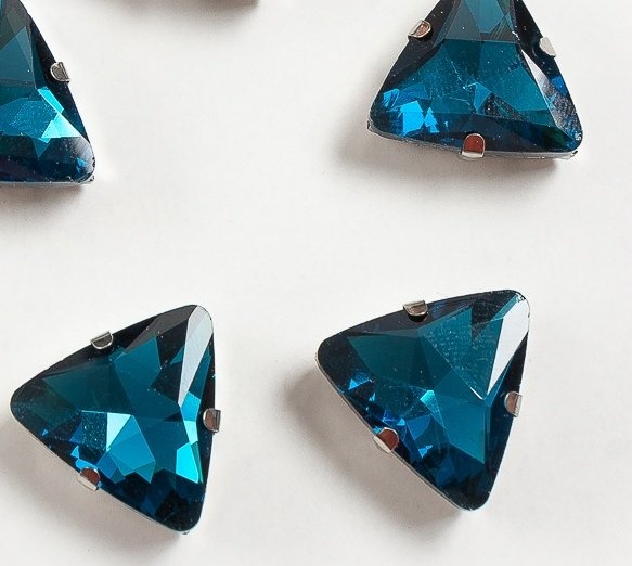 Стразы пришивные стекло в оправе "Треугольник", р. 18 мм, тёмная бирюза
