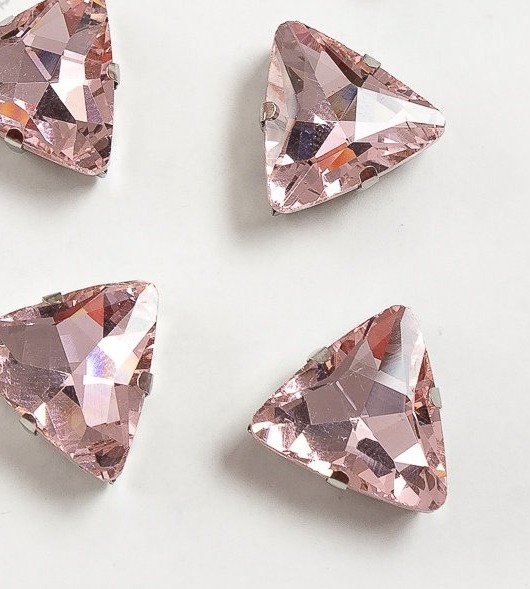 Стразы пришивные стекло в оправе "Треугольник", р. 18 мм, светло-розовый