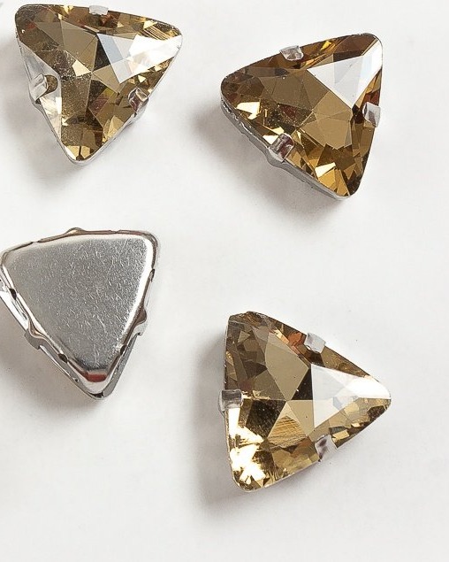 Стразы пришивные стекло в оправе "Треугольник", р. 18 мм, светлое золото