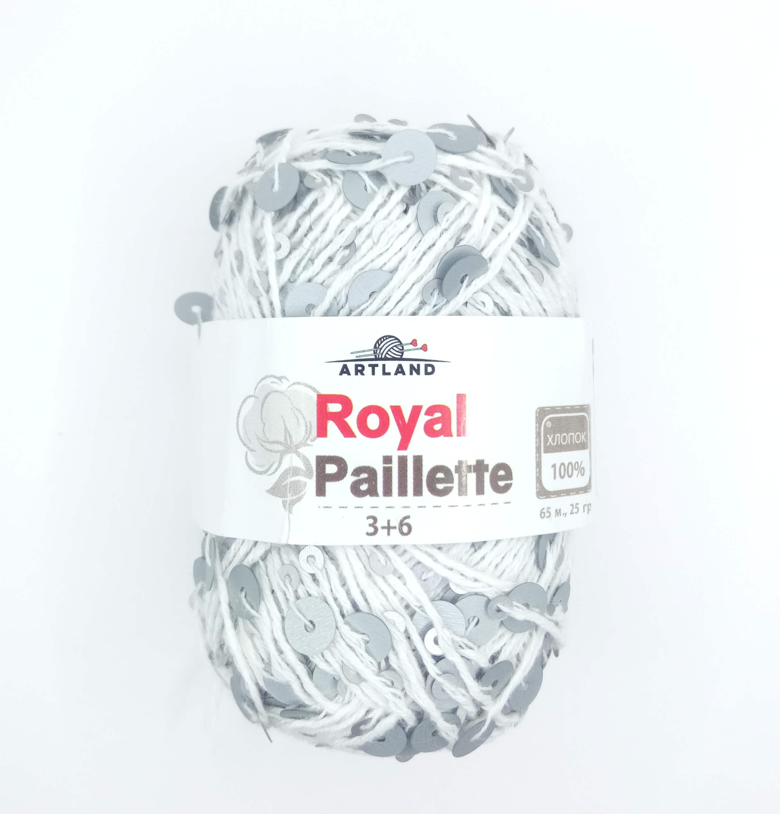 Королевские пайетки/Добавочная нить хлопок с пайетками 3/6мм, 25 гр, 65 м, белый с матовым серым