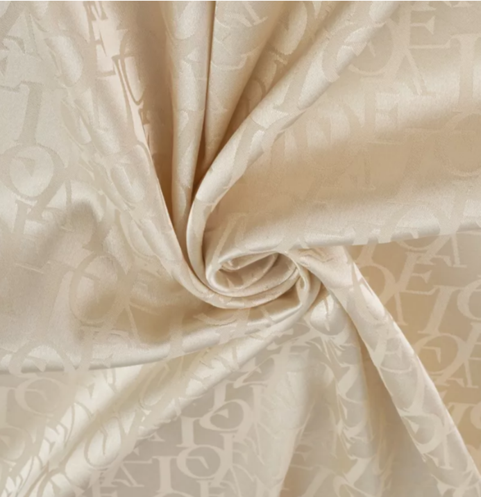 Атлас жаккард "Моар" буквы, 142 г/м2, ш. 150 см, бежевый