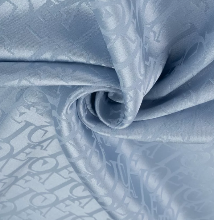 Атлас жаккард "Моар" буквы, 142 г/м2, ш. 150 см, голубой