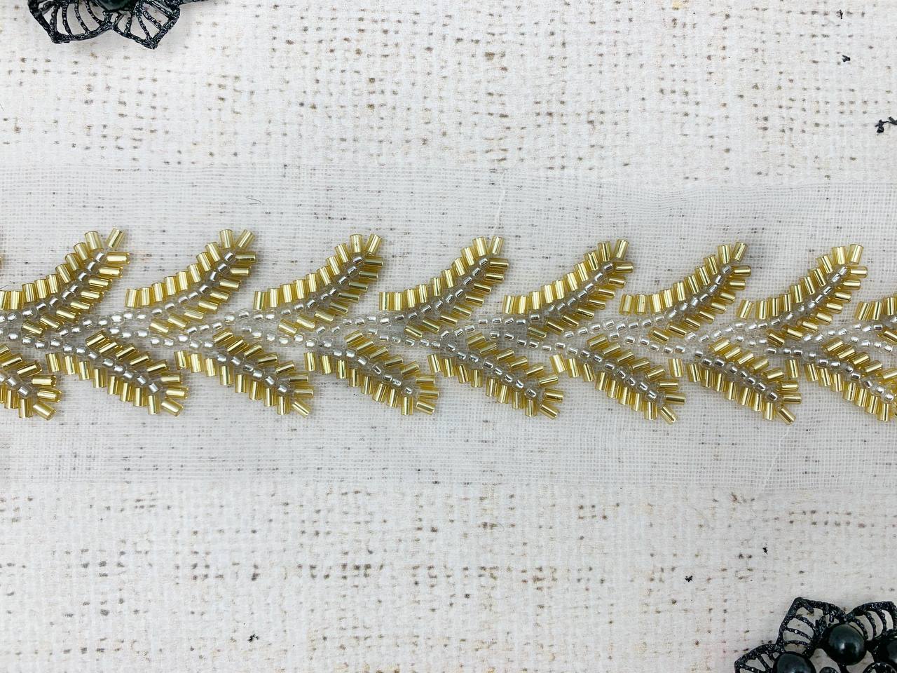 Тесьма декоративная вышивка стеклярус, ш. 4 см