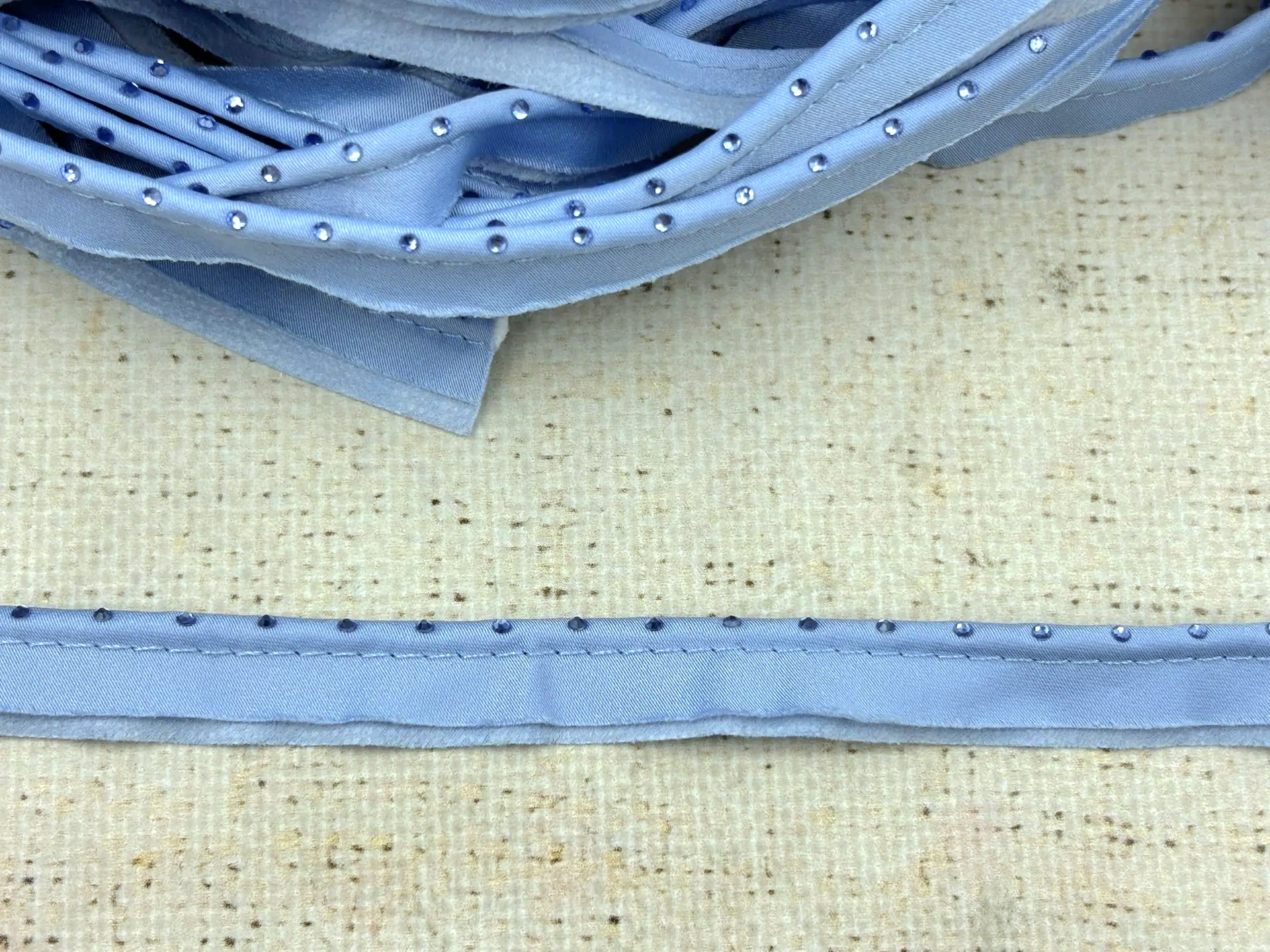Кант сатиновый со стразами, ш. 1,5 см/кант 5 мм, голубой