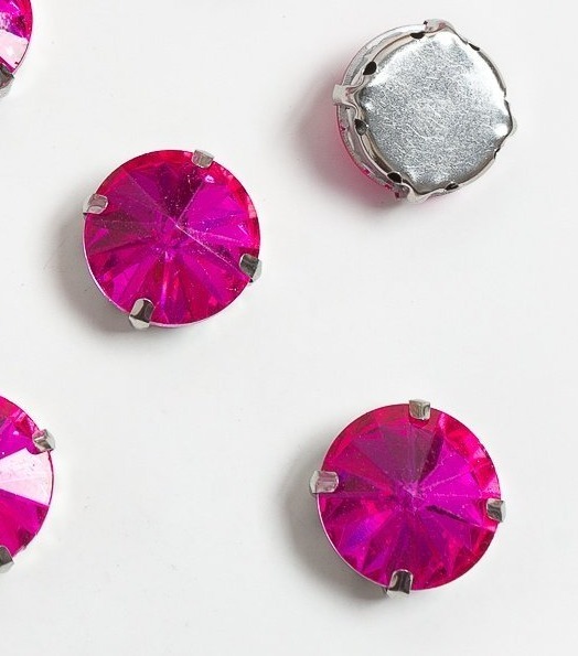 Стразы пришивные стекло в оправе, d 16 мм, фуксия