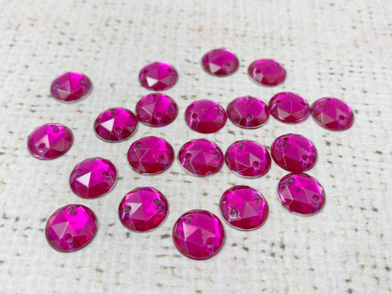 Стразы пришивные акрил, d 1 см, фуксия