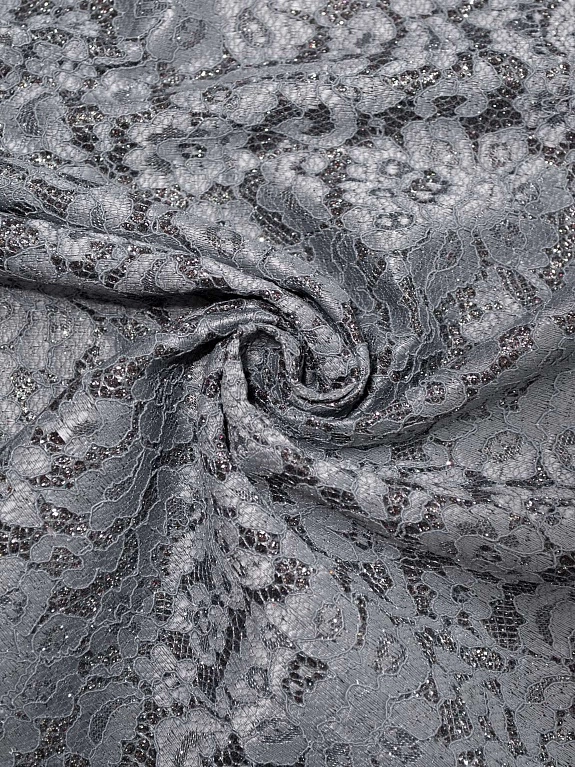 Ткань кружево на трикотажной основе люрекс, 230 гр/м2, 150 см, серый, под заказ