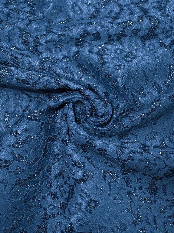 Ткань кружево на трикотажной основе люрекс, 230 гр/м2, 150 см, синий, под заказ