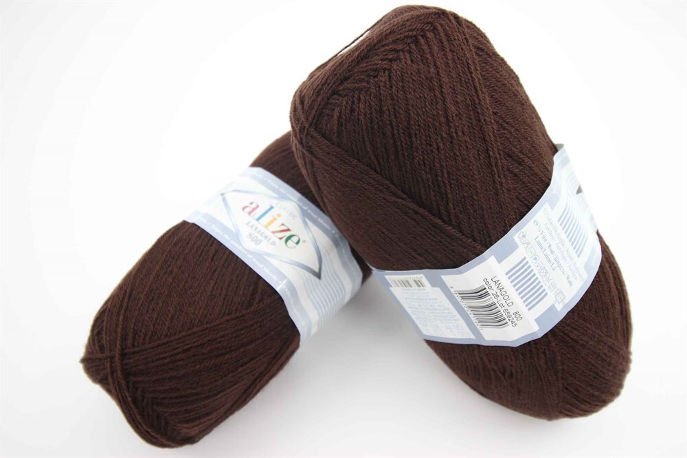 ALIZE "LANAGOLD 800", 49% шерсть, 51% акрил, 100 гр, 800 м, 26 коричневый