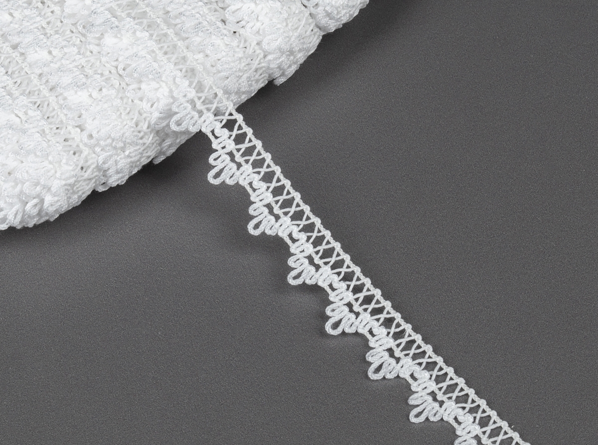 Кружево хлопковое/Тесьма вязаная, 60827/15, ш. 1,5 см, пр-во Беларусь, белый