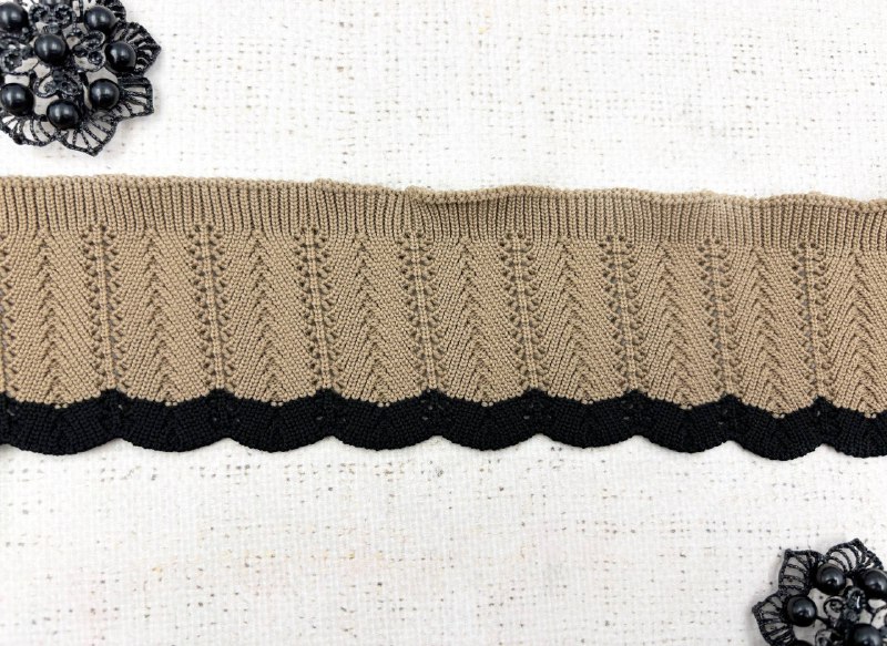 Подвязы трикотажные, ш. 6,5 см, L 145 см, бежевый с чёрным