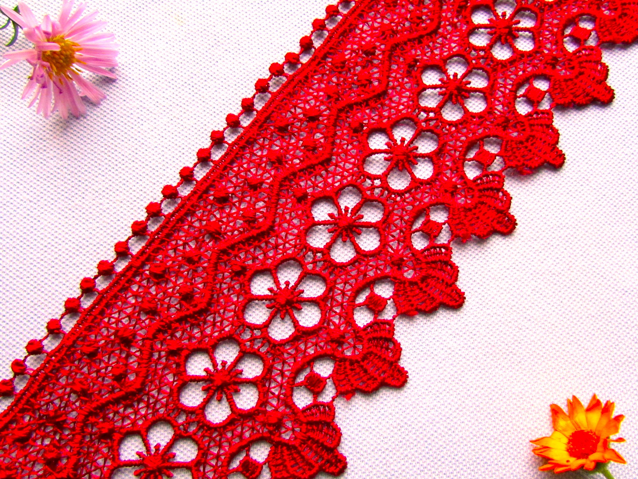 Кружево плетеное, ш. 7,8 см, красный