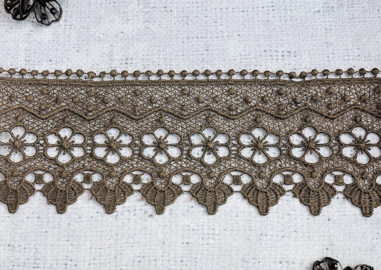 Кружево плетеное, ш. 7,8 см, св.коричневый