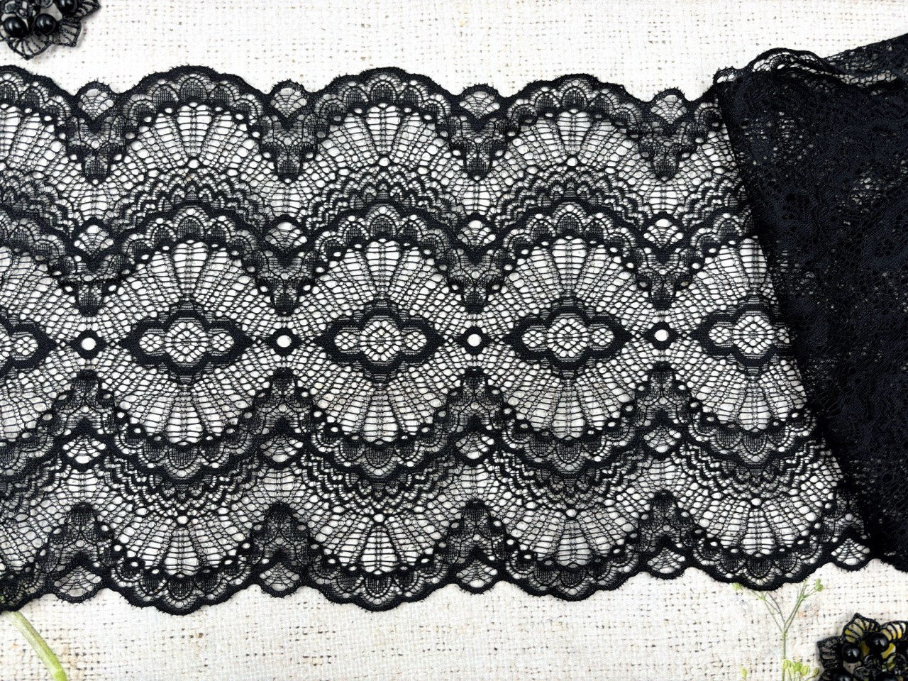 Кружево стрейч, ш. 21 см, чёрный