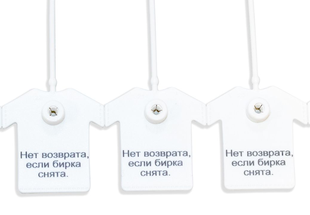 Пломба для одежды/бирка пластиковая "Нет возврата, если пломба снята", белая