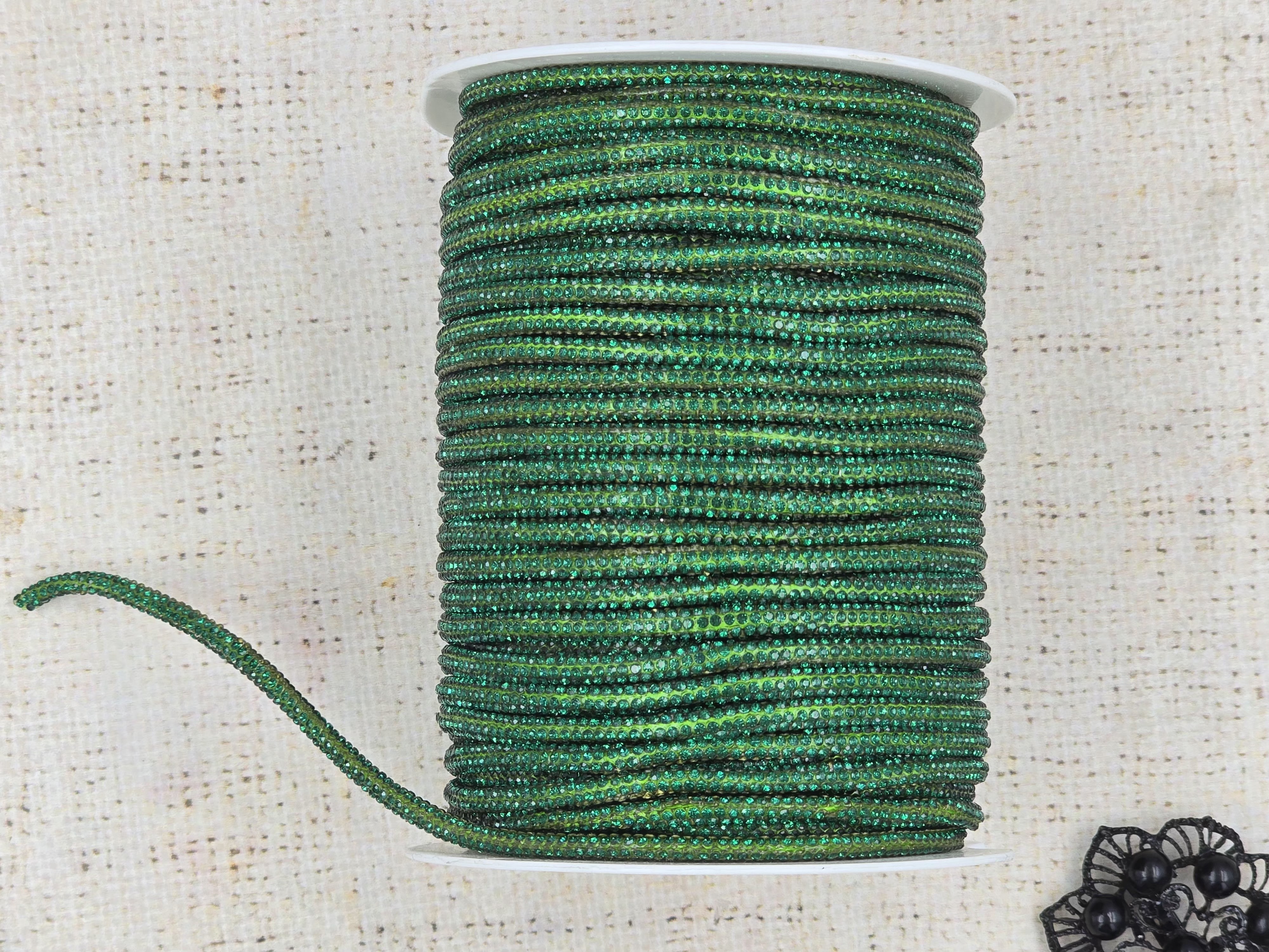 Шнур декоративный со стразами, d 4 мм, зелёный