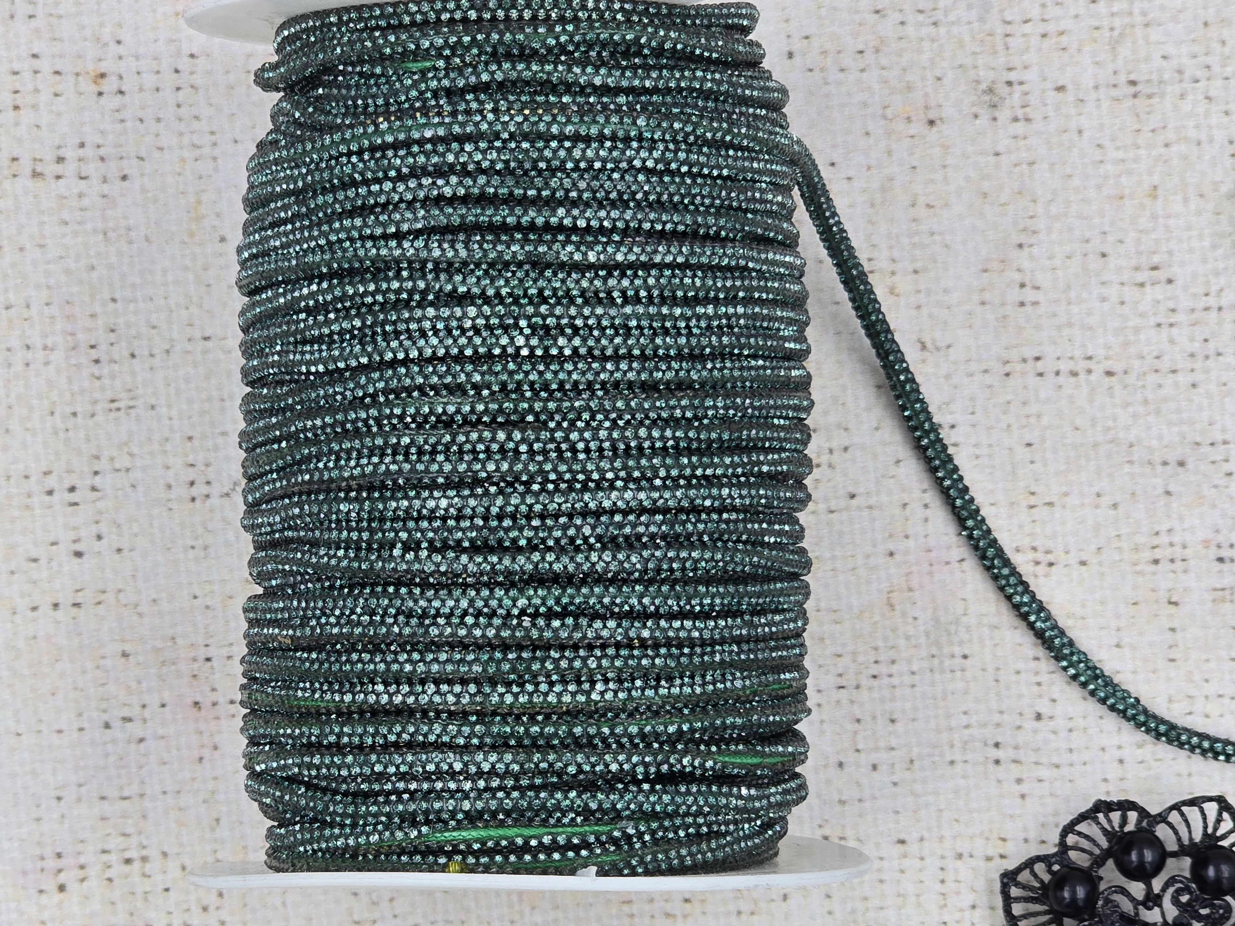 Шнур декоративный со стразами, d 4 мм,т. зелёный