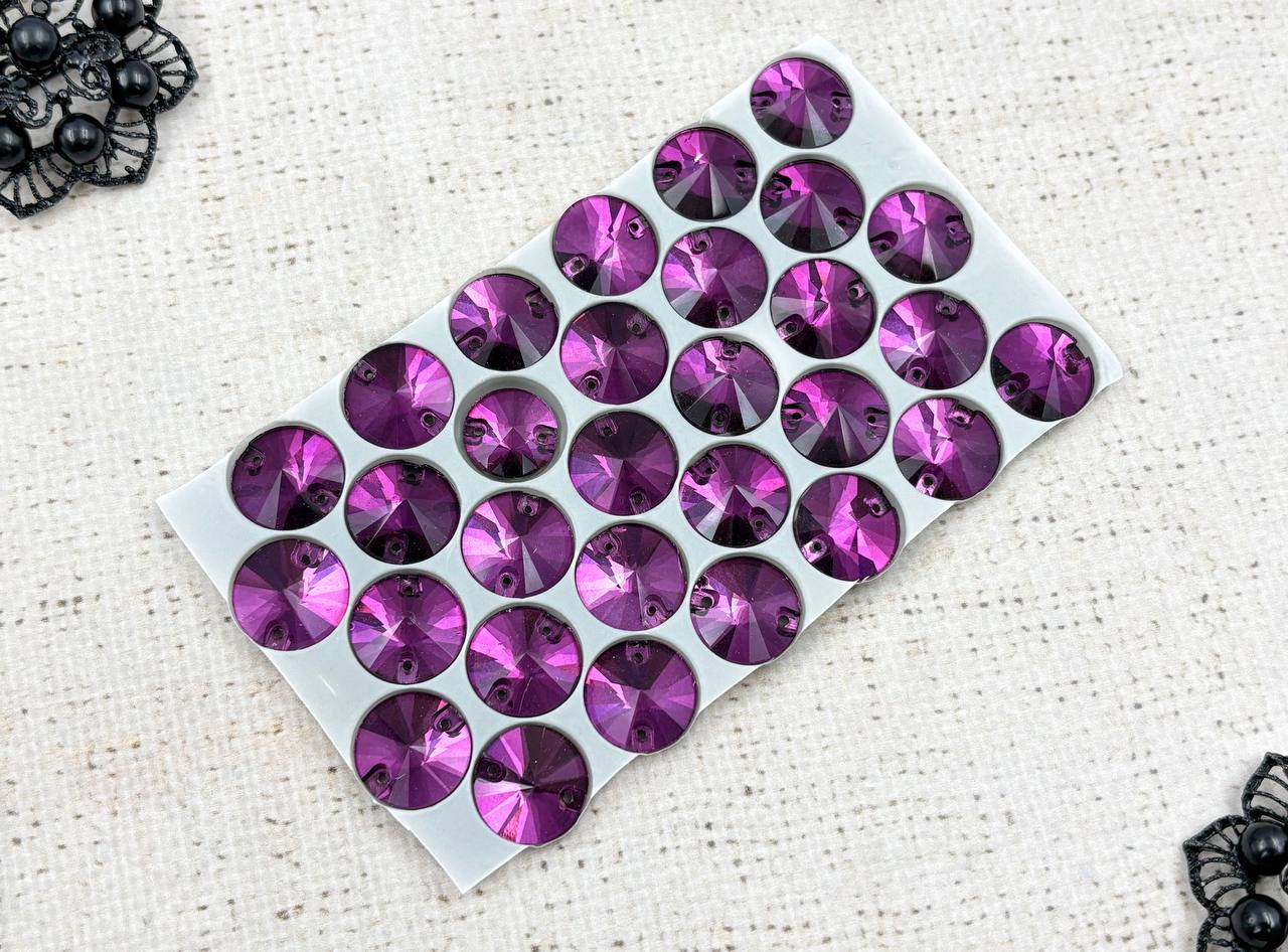 Стразы пришивные стекло Crystal риволи, Ø 16 мм, фиолетовый