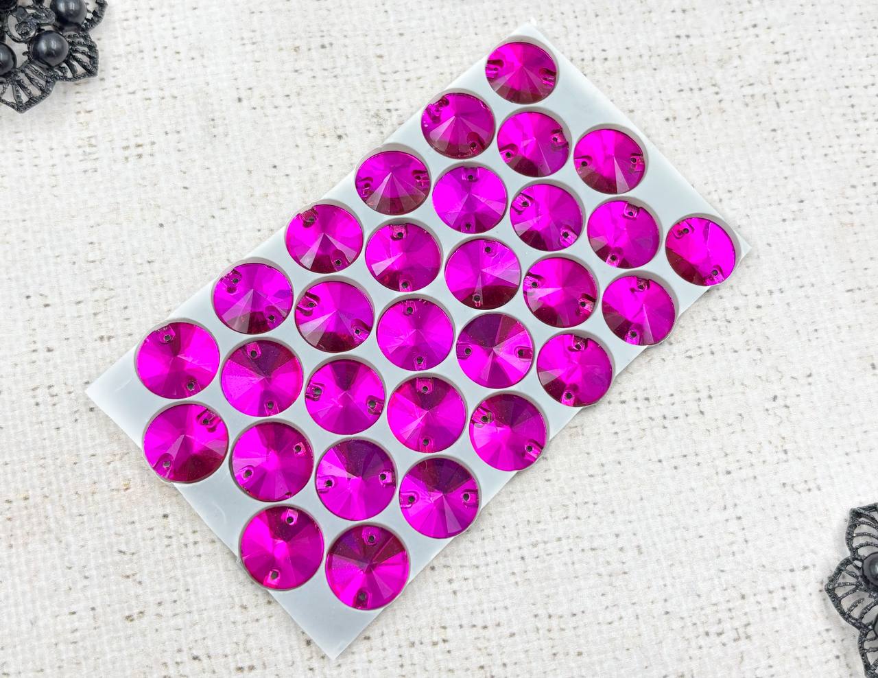 Стразы пришивные стекло Crystal риволи, Ø 16 мм, фуксия