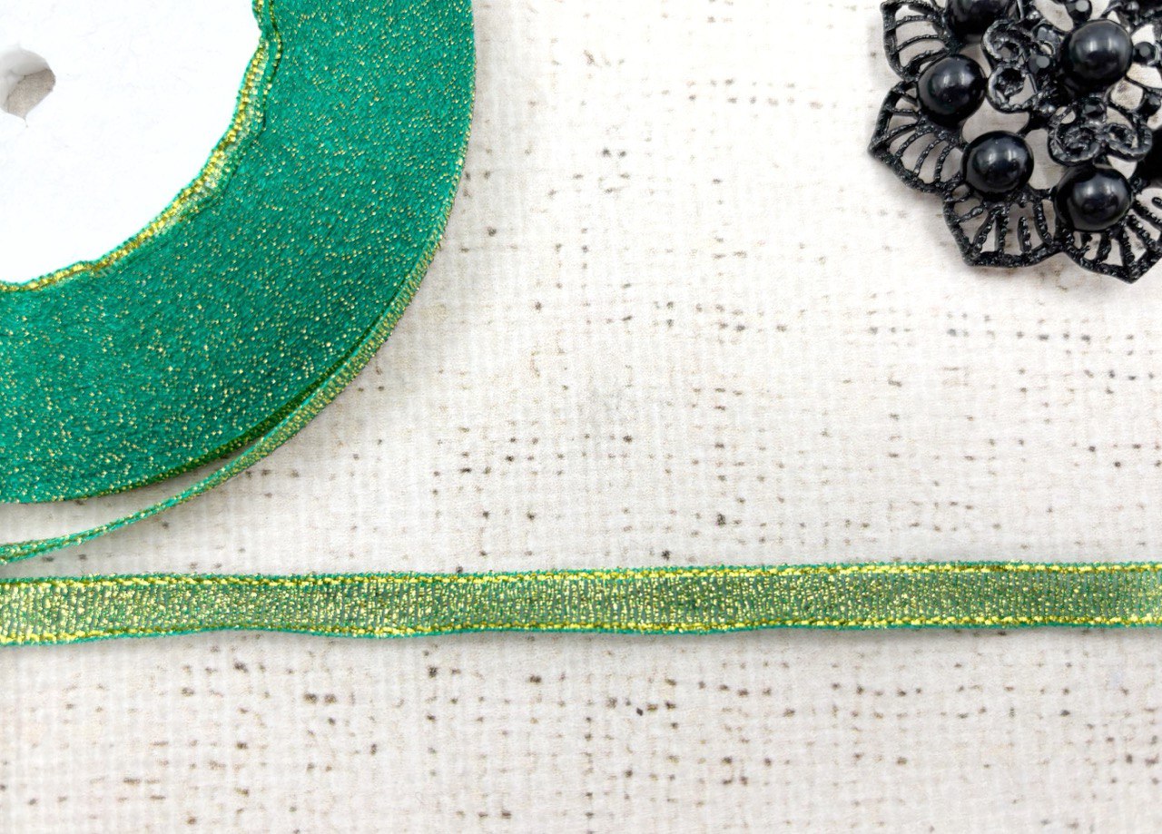 Лента парча, ш. 6 мм, зелёный