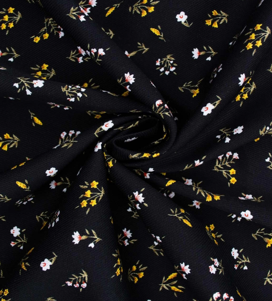 Ткань штапель твил принт 140 гр/м2, 100% вискоза, ш. 145 см, чёрный