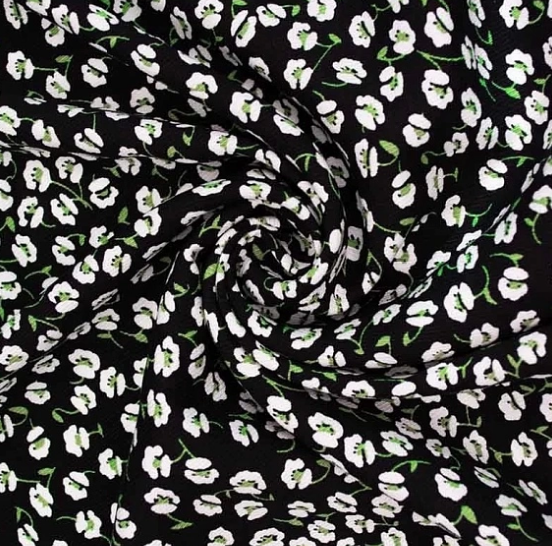 Ткань штапель твил принт 140 гр/м2, 100% вискоза, ш. 145 см, черный