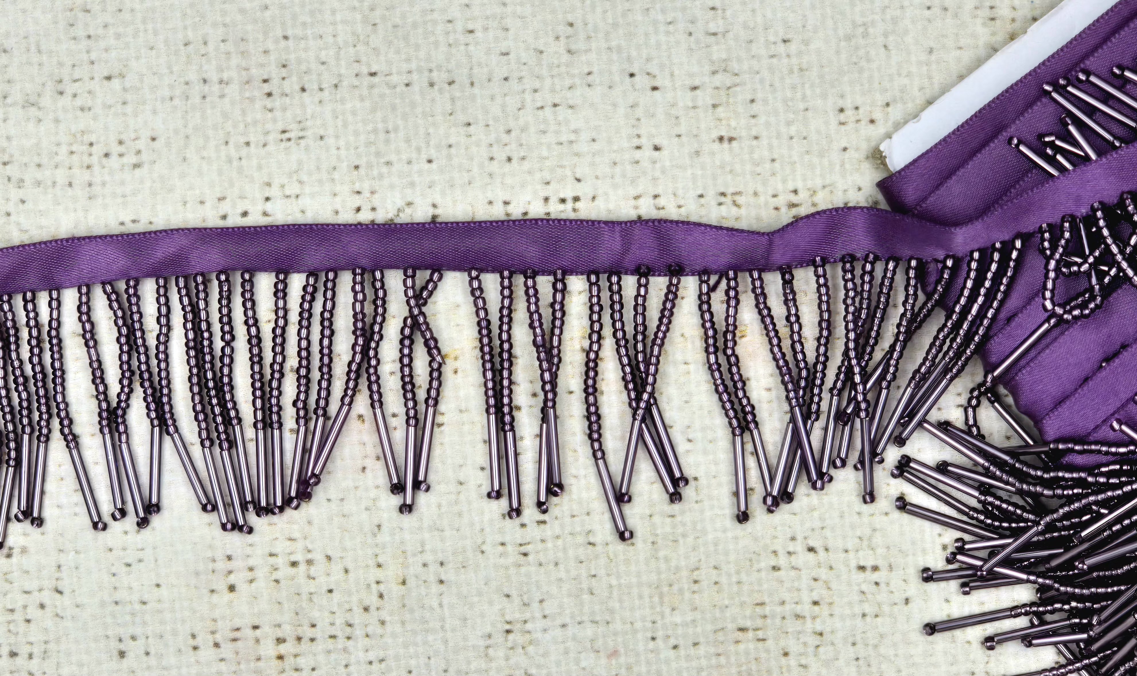 Тесьма отделочная атлас с бисером, ш. 4 см, т. сиреневый