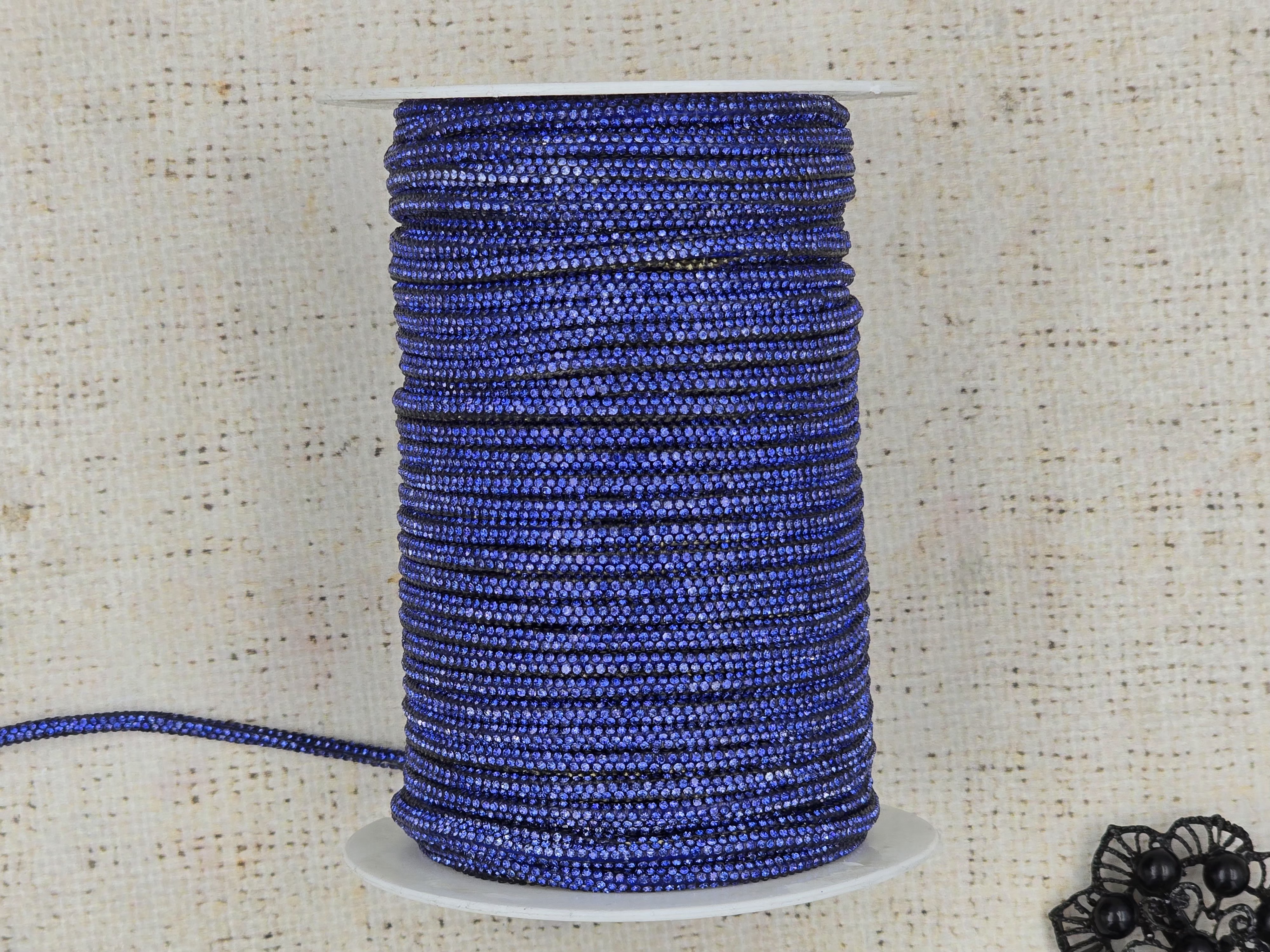 Шнур декоративный со стразами, d 4 мм, синий