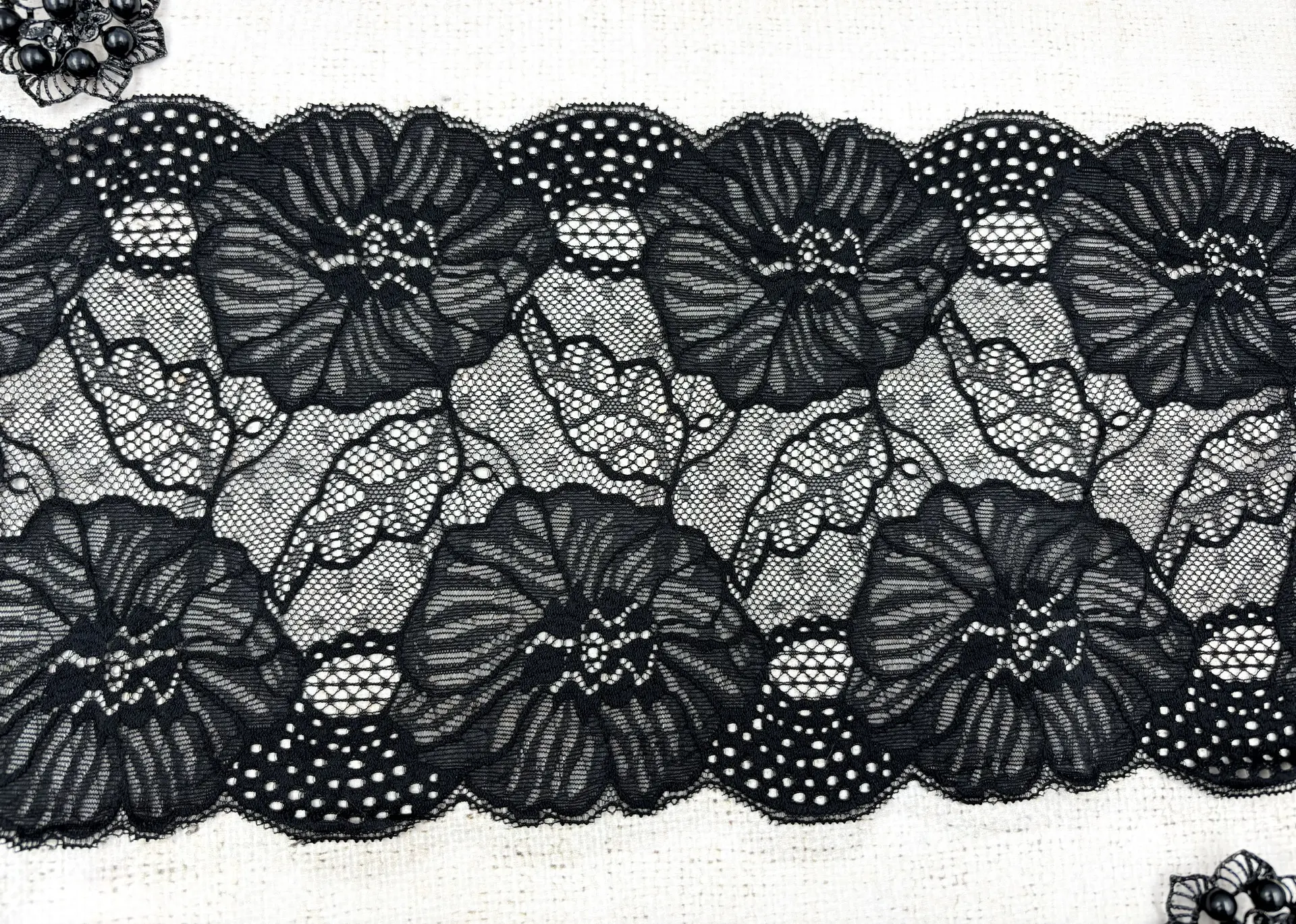 Кружево стрейч, ш. 18 см, чёрный