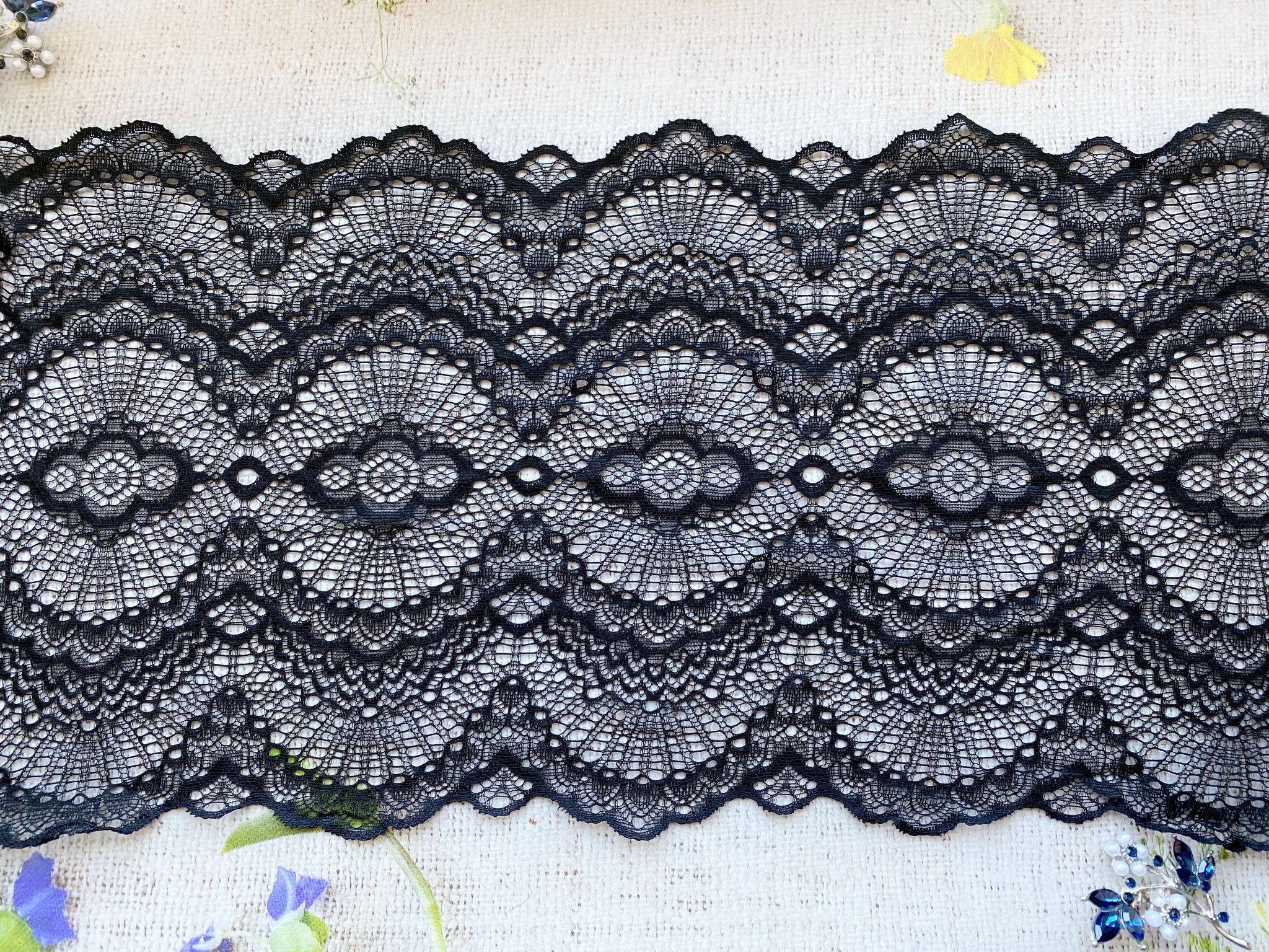 Кружево стрейч, ш. 21,3 см, чёрный