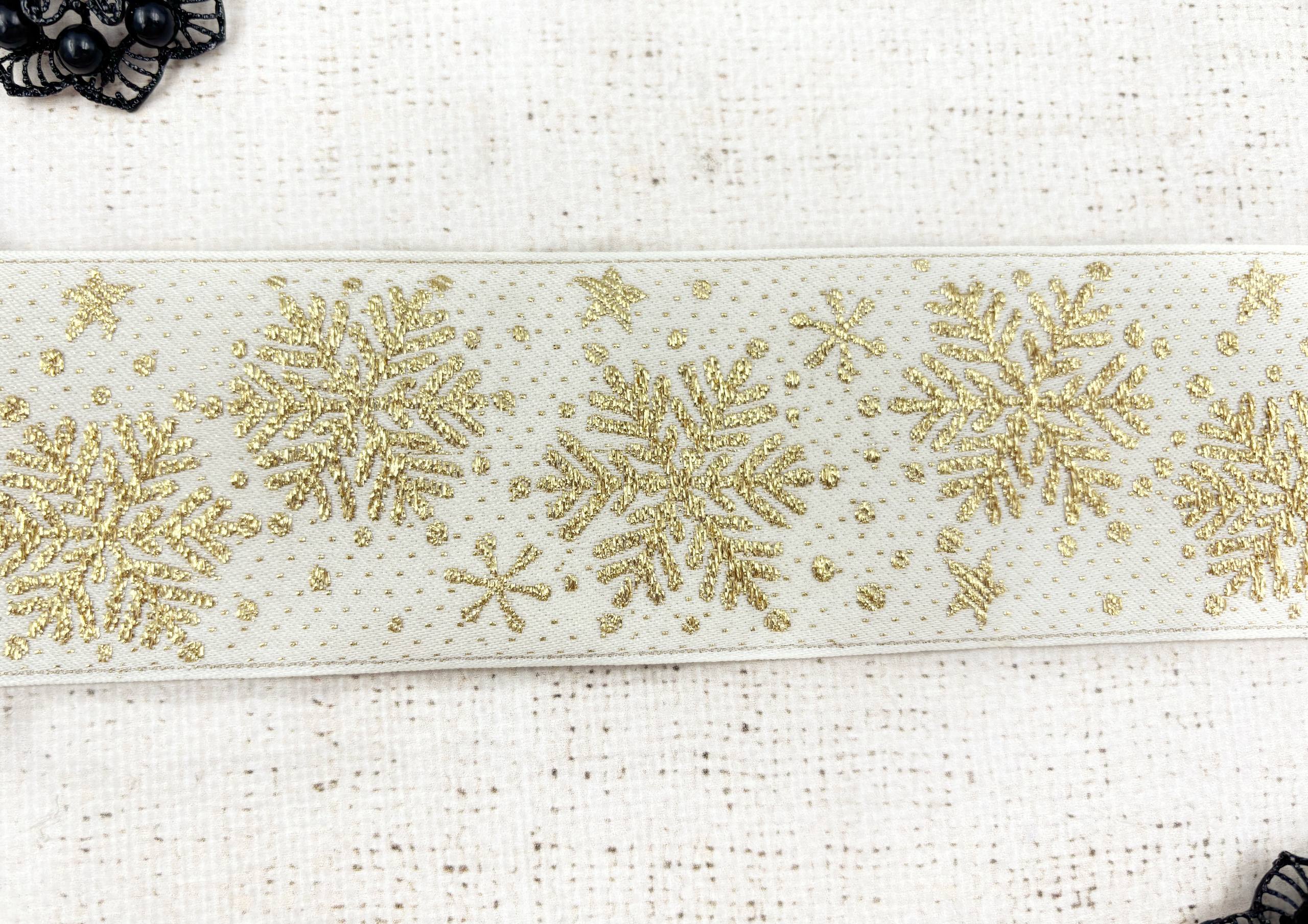 Тесьма жаккард с метанитом, ш. 6,5 см, белый/золотой