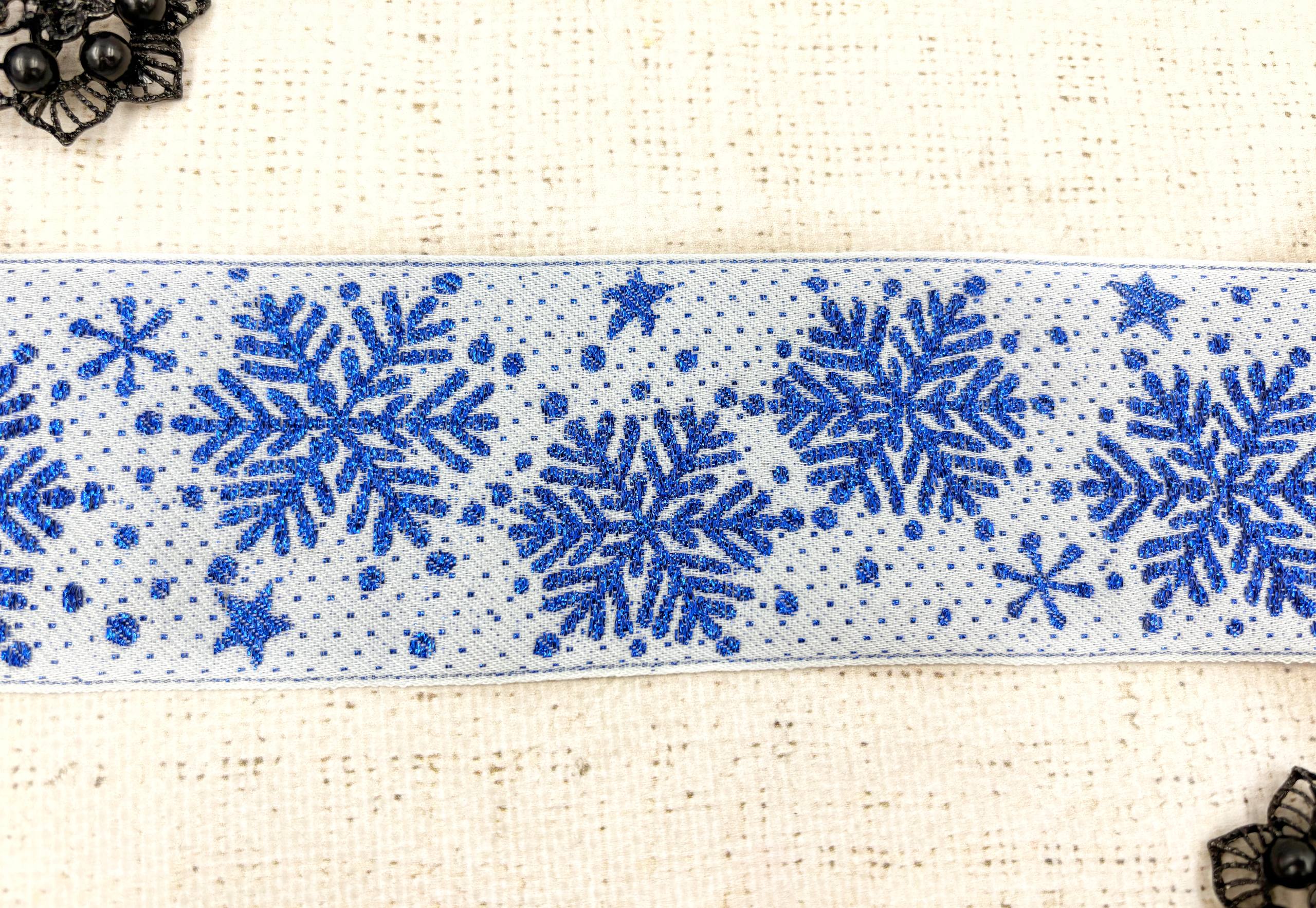 Тесьма жаккард с метанитом, ш. 6,5 см, белый/синий