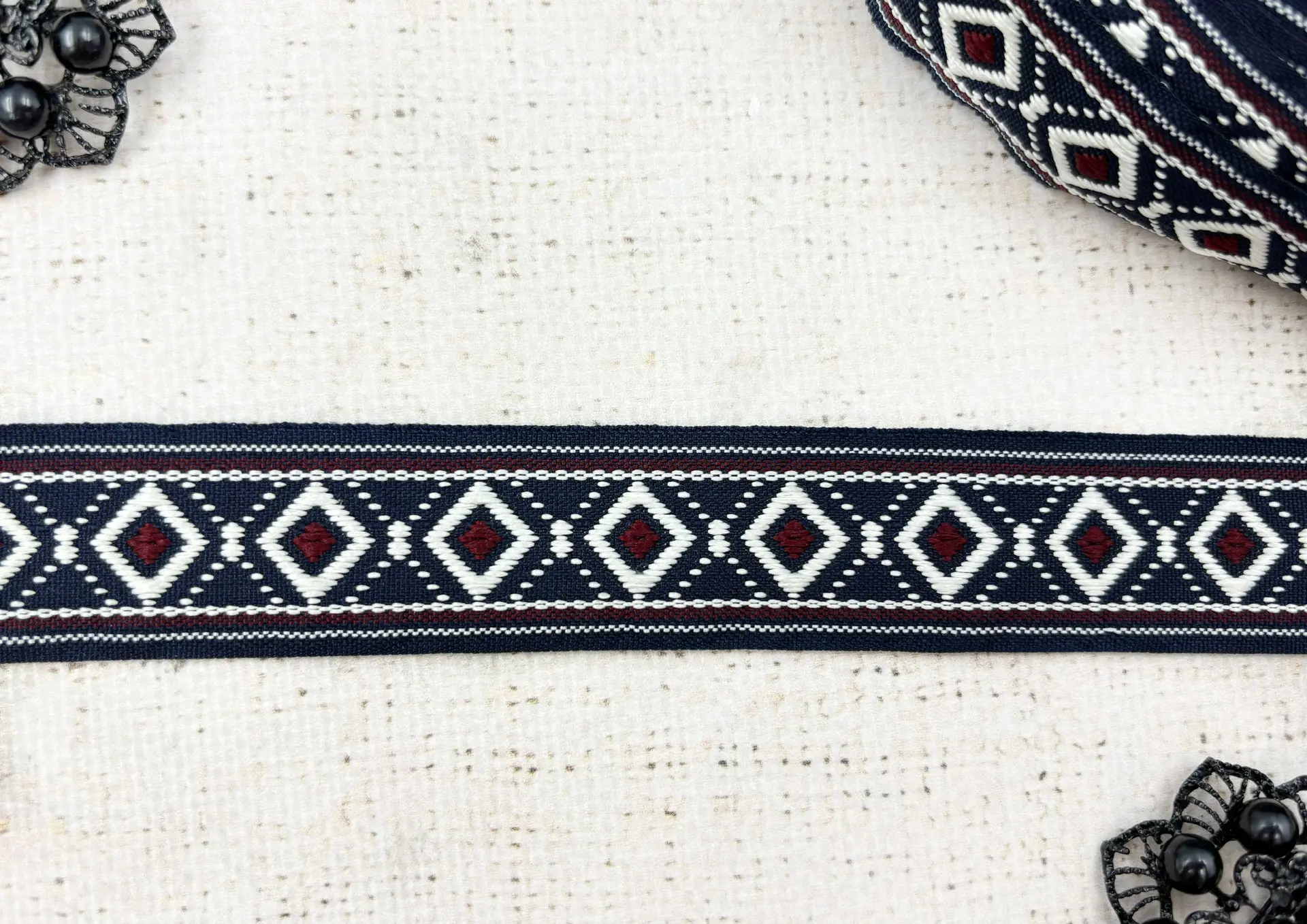 Тесьма жаккард, ш. 3 см, чёрный/бордовый