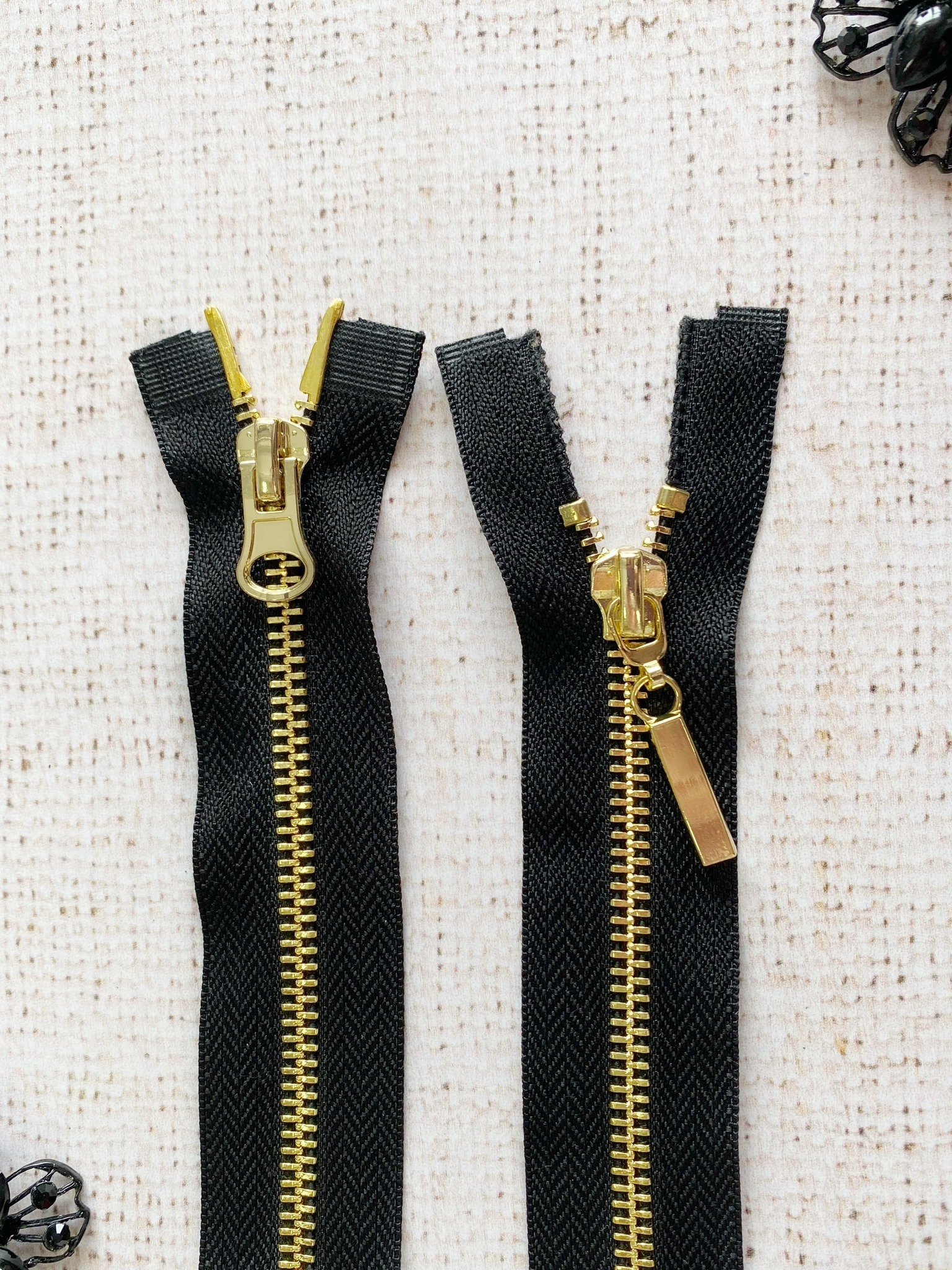 Молния шлифованная металл Т5, L 115 см, 2 бегунка, чёрный/золото