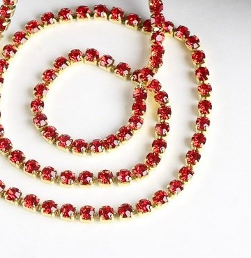 Цепь со стразами, ss 8, ш. 2,4 мм, красный в золотой оправе