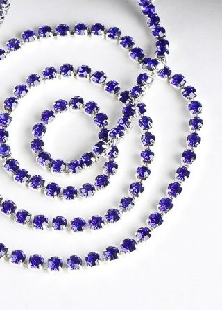 Цепь со стразами, ss 8, ш. 2,4 мм, синий в серебряной оправе