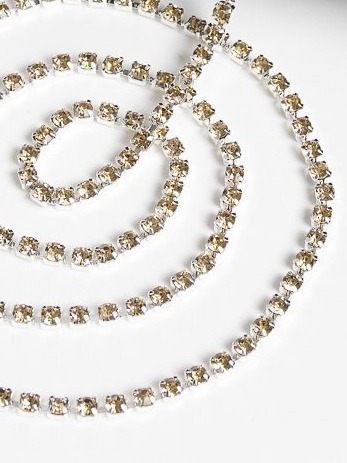 Цепь со стразами, ss8, ш. 2,4 мм, золото в серебряной оправе