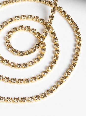 Цепь со стразами, ss 8, ш. 2,4 мм, золото в золотой оправе