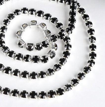 Цепь со стразами, ss16, ш. 4 мм, чёрный в серебряной оправе