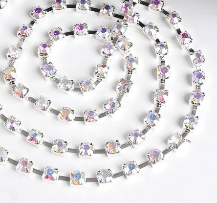 Цепь со стразами, ss16, ш. 4 мм, серебро напыление AB в серебряной оправе