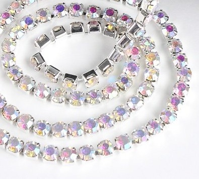Цепь со стразами, ss16, ш. 4 мм, серебро напыление AB в серебряной оправе