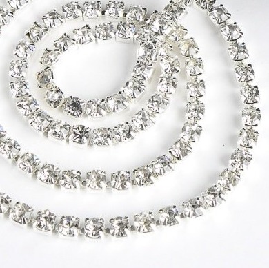 Цепь со стразами, ss16, ш. 4 мм, серебро в серебряной оправе