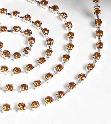 Цепь со стразами, ss16, ш. 4 мм, тёмное золото в серебряной оправе
