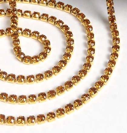 Цепь со стразами, ss16, ш. 4 мм, тёмное золото в золотой оправе